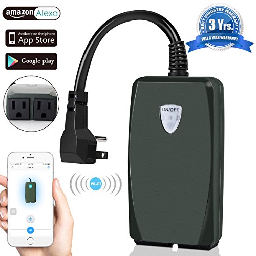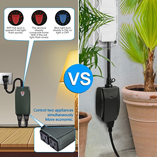 Outdoor Wi-Fi Outlet, Switch Smart Plug with 2 Sockets, Works with Alexa, Google Home, No Hub Required, Wireless Remote Control/Timer by Smart Phone, Weatherproof for Indoor and Outdoor Use