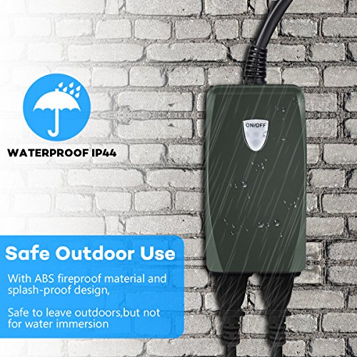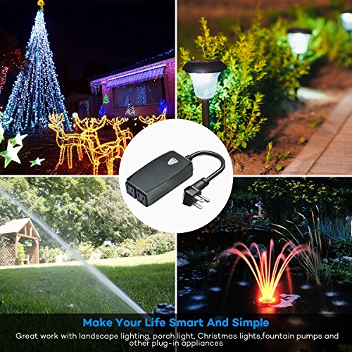 - 【DURABILITY & SAFE PROTECTION】This of outdoor wifi outlet with ABS fireproof material and splash-proof design, IP44 Waterproof standard, features weather and impact resistant housing withstands damp or wet conditions, safe to leave outdoors.Timing settings of Alexa smart plug can prevent overcharge.