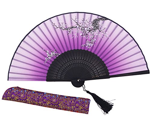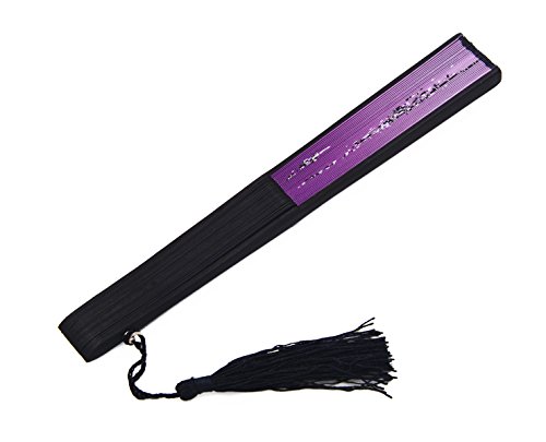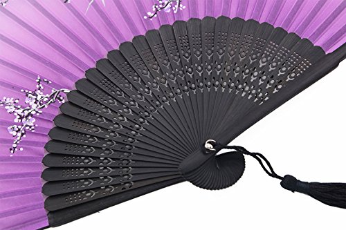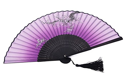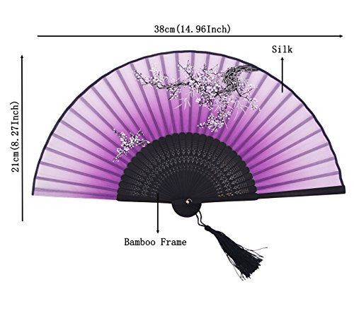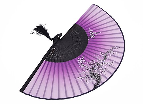 Meifan Chinese /Japanses Classical Handmade Vintage Folding Bamboo Silk Flower Pattern Hand Fan MFX (Purple)