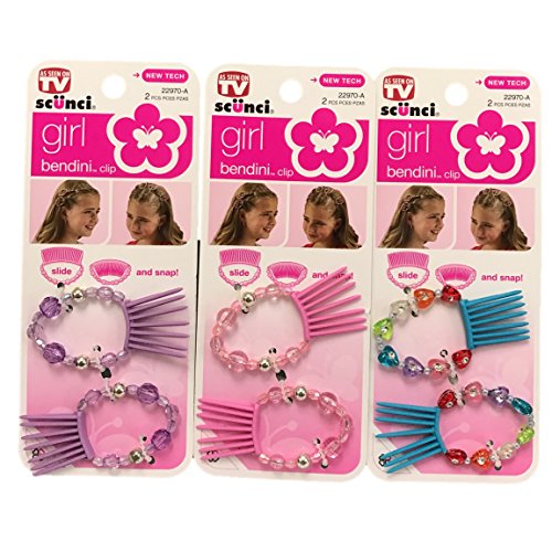 -. Title : Scunci Girls Bendini Hair Clip Snap Combs with Beads 6 Combs