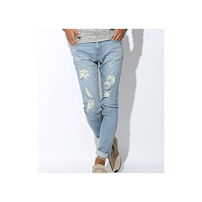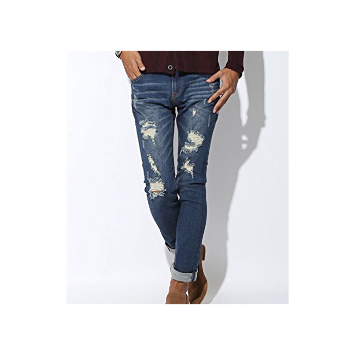 FULL GLOW BITTER 데님 팬츠 데미지【데미지 가공 스트레치 스키니 데님 팬츠】pm-4210 블루M