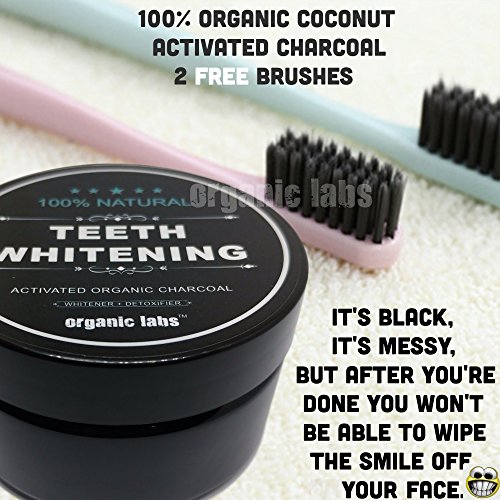 -. Title : Organic Labs Natural Teeth Whitening Charcoal Powder with 2 Charcoal Infused Brushes - Whitens Teeth, Improves Gum Health, Freshens Breath. Food grade.