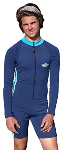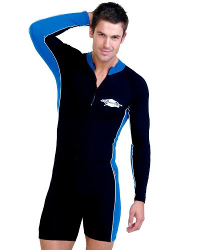 Studio : Stingray Australia Publisher : Stingray Australia Binding : Misc. Product Description Long sleeve surfer style swimsuit for men and women. Chlorine Saltwater resistant. 50 SPF/UPF. Blocks over 98% of UVA UVB rays, the maximum protection available.The suit is made for exercise in and out of the water. The design features knee length pants, front zipper and high collar with contrasting side panels. The fabric is high quality and retains color and shape. The garment is simple to wash - just rinse after wear. Soft, easy care fabric is chlorine resistant and chemical free while providing maximum protection. These swimming suits are perfect for those seeking a modest style. Perfect for snorkeling, surfing and swimming. Designed by Stingray Australia, one of the leaders in sun protection swimwear. Great for the beach, water parks, diving, skiing, the pool and anywhere sun protection is needed. 0