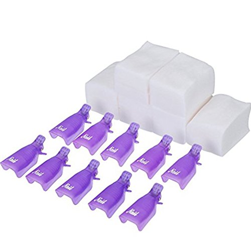 eBoot Nail Cap Clips UV Gel Polish Remover Wrap 10 Pack with 420 Pack Nail Wipe Cotton Pads (Purple)