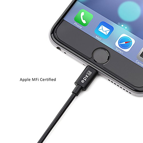 [Apple MFi Certified] epxid® Lightning to USB Cable 3.3ft / 1m with Ultra-Compact Connector Head for Apple iPhone 6s, 6 Plus 5s 5c 5, iPad Pro Air 2, iPad mini 4 3 2, iPod touch 5 6/ nano 7(Black)