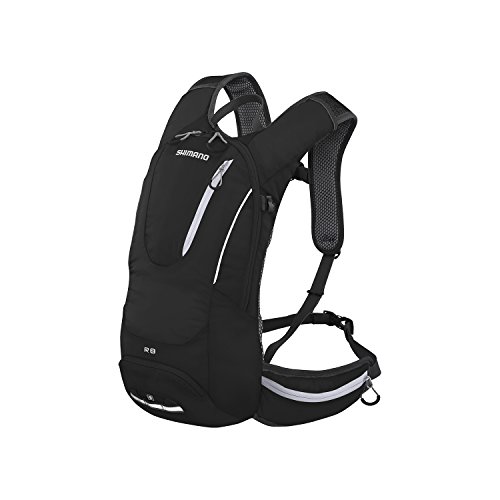 Studio : Shimano Publisher : Shimano Binding : Misc. Product Description For trips that require a day or two worth of gear, the All-Round Daypack by Shimano offers plenty of storage compartments with a sleek design. The main compartment features sections to store a pump, extra tubes, tools and more, for quick tune-ups on the trail. Whether you're on or off the trail, the All-Round Daypack includes the ability to be worn casually or strapped-on with a chest belt and a waist belt that also doubles as a quick access gear compartment. A felt-lined pocket for holding valuables is located at the top of the bag, along with a helmet clip, and rear-mounting light attachment. There is also a dedicated area for carrying a hydration system that can hold up to 8L of liquids. For added visibility, the All-Round Daypack includes reflective strips.Features: Sleek minimalist design with chest and waist straps to keep the bag secure while riding off road Main and secondary compartments for holding bike repair items, tools, food, and a felt lined pocket for carrying valuables A helmet clip, rear-mounting light attachment, and reflective strips Reservoir dedicated to holding a hydration system with up to 8L of liquid 0