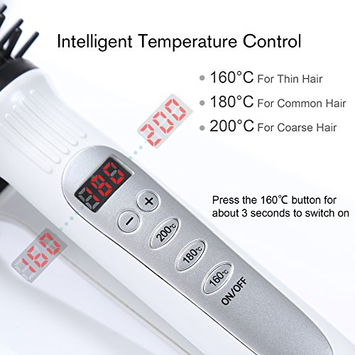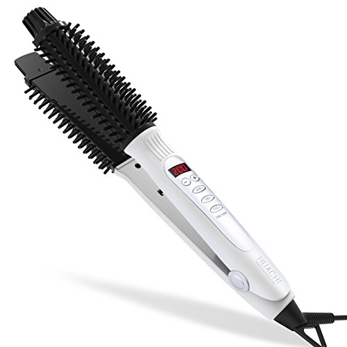 Huachi Hair Straightener 3 in 1 Ceramic Curling Iron Brush, Flat Iron Hot Brush with LED Display, Travel Irons Dual Voltage, Round Hair Brush Professional, Flat...