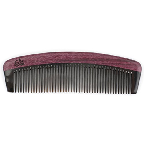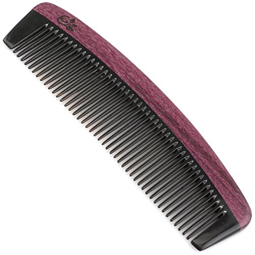 Evolatree Purpleheart Horn & Wood Comb for Hair - Handmade Natural Wooden Combs with Anti-static & No Snag - All-Purpose Comb, Fine Tooth, 6"
