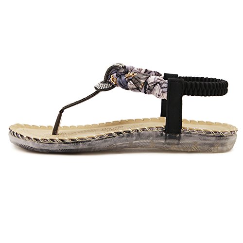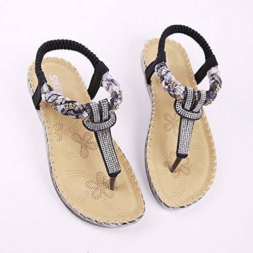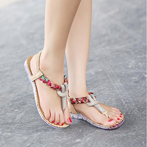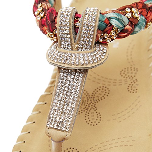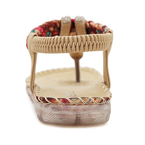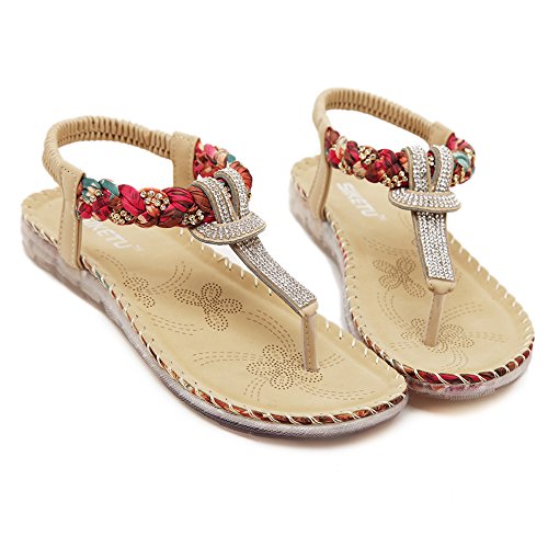 Temofon Women's Sandals Bohemian Beach Sandal Flats Beaded Rhinestone T-Strap Summer Flip Flop Shoes. Sandals designed with flat heel,T-Strap,Clip toe,Print flower and Beaded rhinestone , Every detail design is comfort for your casual holiday!.