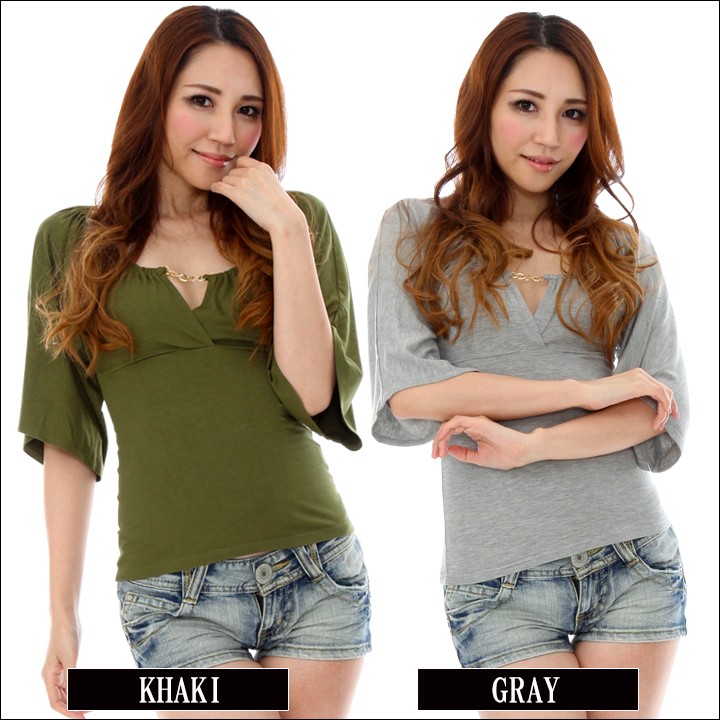 5部袖ギャザードネックトップス(IT) 大きいサイズ 春 セクシー レディース ギャル服 ギャル 大人 13号 15号 17号 19号 LL 2L 3L 4L 5L 6L 6L