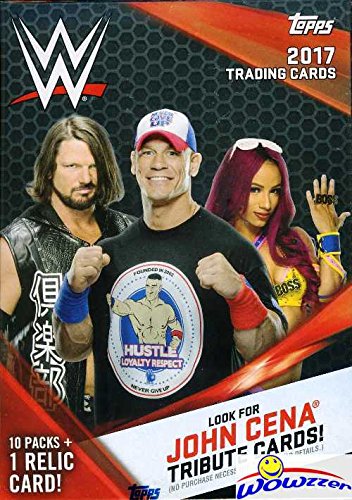 2017 Topps WWE Wrestling HUGE EXCLUSIVE Factory Sealed Retail Box with 10 Packs, RELIC Card & JON CENA Tribute Card! Look for Cards, Autographs & Relics of Jon Cena,Sting,Triple H & Many More! WOWZZER