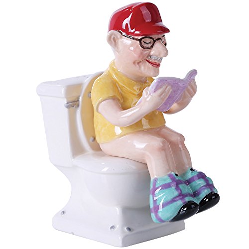 4.75 inches Reading Grandpa on Toilet Magnetic Salt and Pepper Shaker Kitchen Set by Pacific Trading