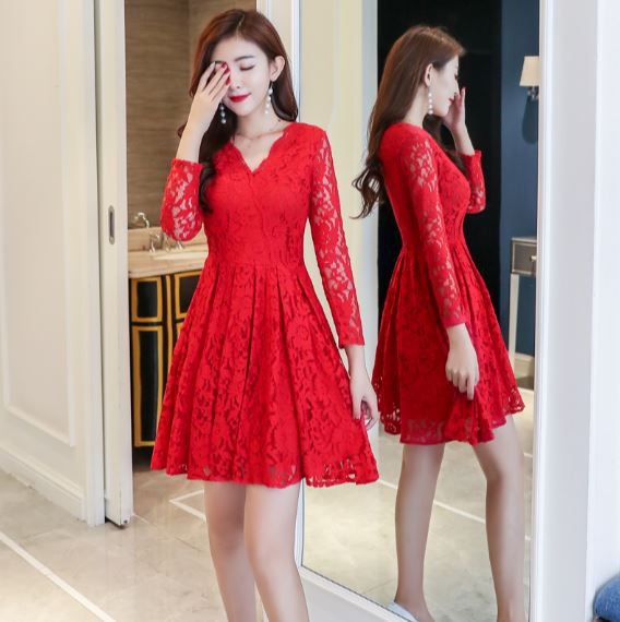 総レース生地の華やかなドレスです。