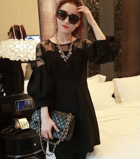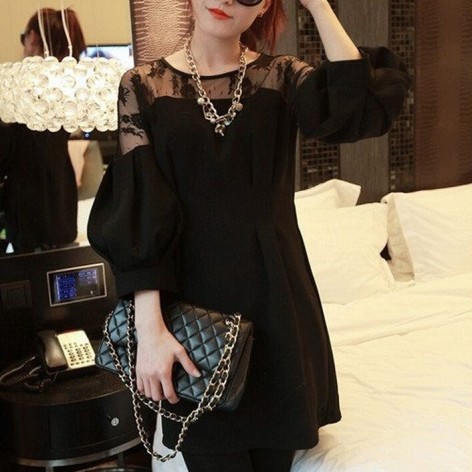 ワンピース ミニ丈 ブラック レディース シースルー レース 花柄 バルーンスリーブ ドレス エレガント セクシー drgz0632