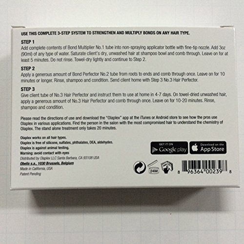 Studio : Olaplex Professional Publisher : Olaplex Professional Binding : Misc. Product Description You will see the difference the first time you open the foils and rinse. Your drain will not be full of broken hair. Your client will notice their hair being softer, shinier, easier to manage with less frizz for weeks. Works with all manufacturers' formulas, from lightener to color. Simple to use - the professional OLAPLEX service consists of just 3 easy steps. Olaplex Bond Multiplier No 1: Add directly to lightener or color before application Olaplex Bond Perfector No 2: After rinsing hair color, apply for a minimum of 5 minutes then rinse, shampoo condition Olaplex Hair Perfector No 3: Apply a generous amount to wet towel-dried hair and leave on for a minimum of 10 minutes, then rinse, shampoo and condition. This is NOT a conditioning treatment to be left on the hair and should be shampooed out of hair at the end. The longer it is left on, the more effective it is, 10 minutes is recommended and may be left on for longer periods of time for even better results. This may be used more than once a week if necessary. 0