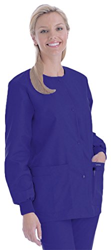 Landau Women's Crew Neck Warm-Up Solid Scrub Jacket Medium Grape