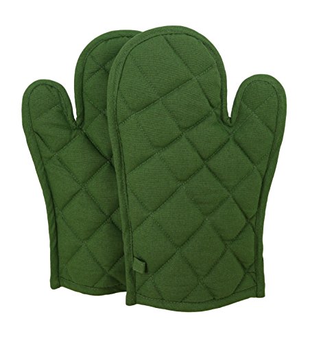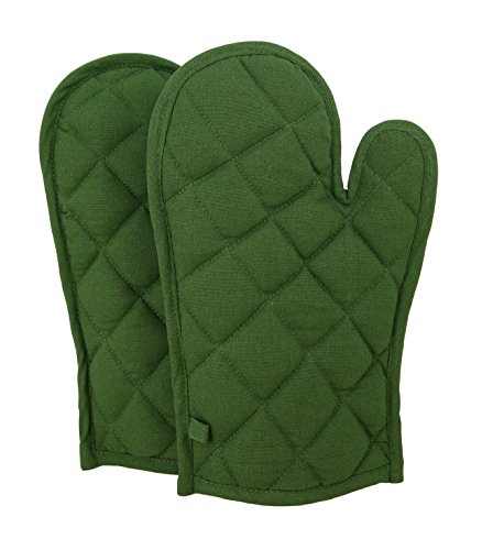 Shalinindia Cotton Oven Mitts Set of 2 Quilted Cooking Gloves,OG02-2502P,Green,8 x12 Inch