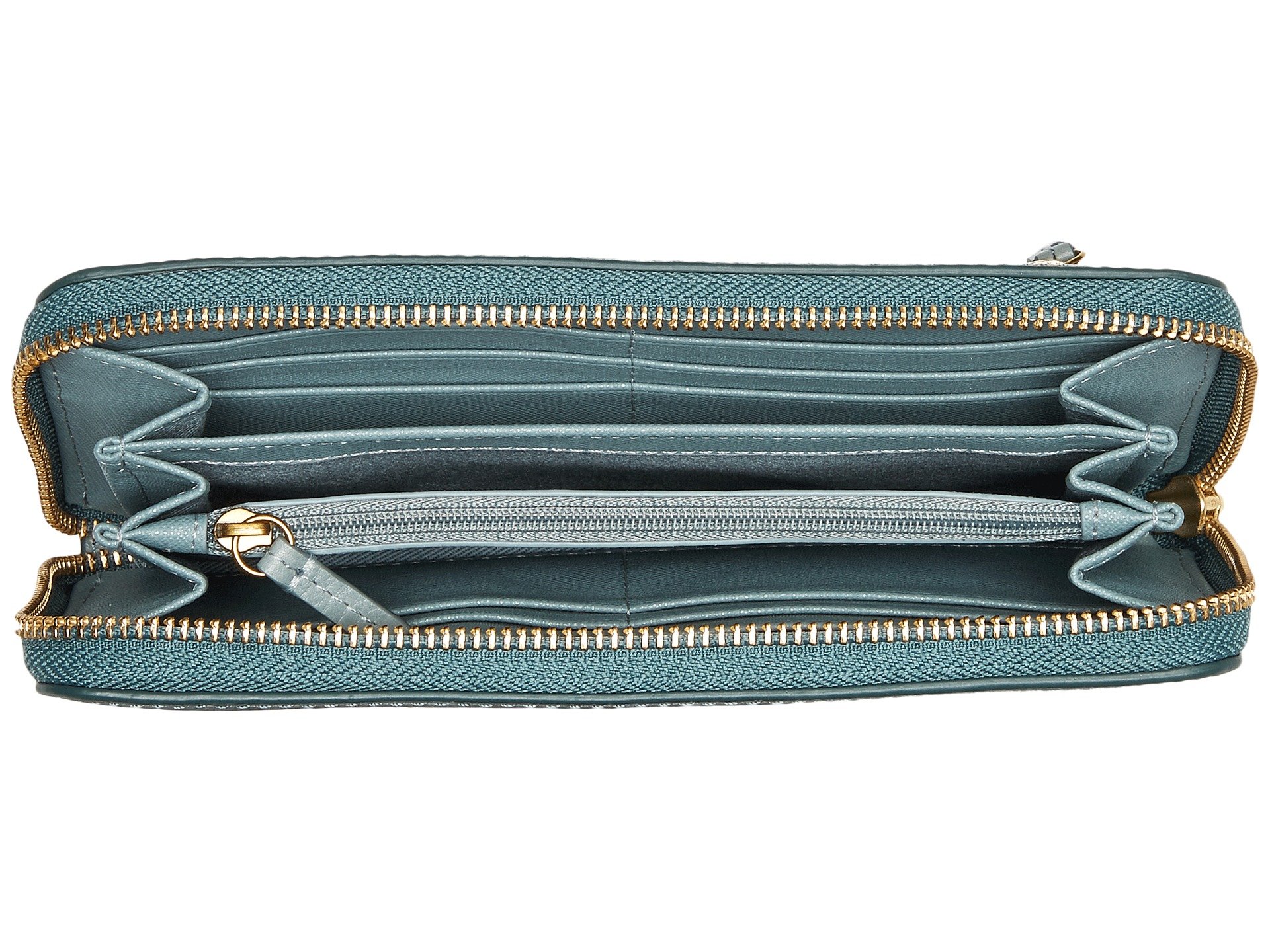 | Product Information SKU: #9042356Headed out to drinks with your girls? Pack light and grab this beauty, the Fossil? Emma Large Zip Clutch with RFID.Made of softly pebbled leather.RFID protection.Zipper closure.Detachable wristlet strap.Exterior back zip pocket.Lining made of polyurethane and cotton.Interior center zip pocket.Two interior bill compartments.12 interior credit card slots.Imported.This product may have a manufacturer's warranty. Please visit the manufacturer's website or contact us at warranty@support.zappos.com for full manufacturer warranty details. |