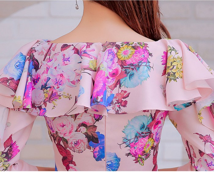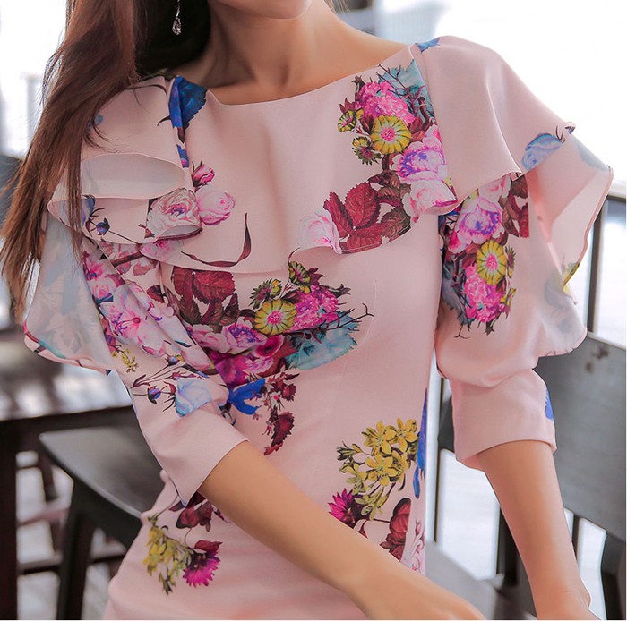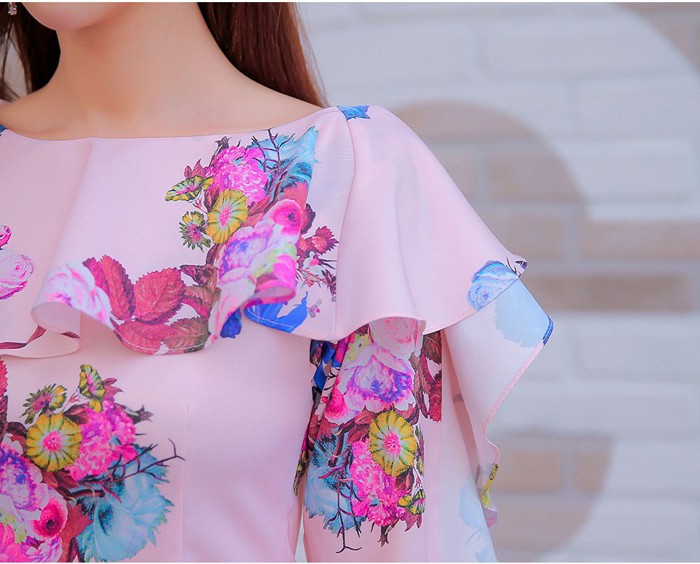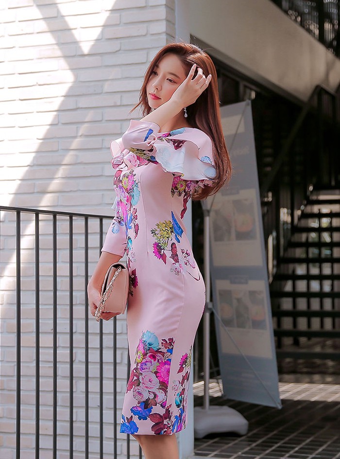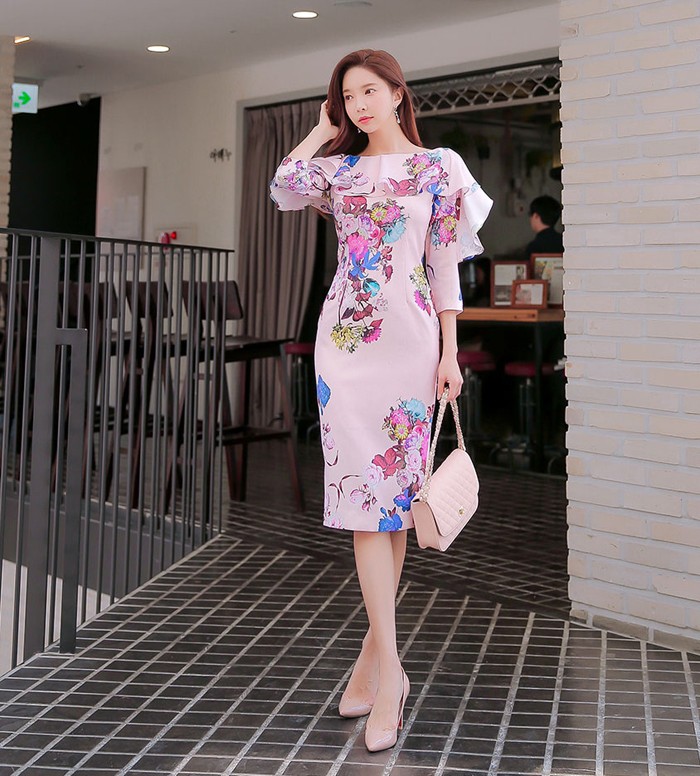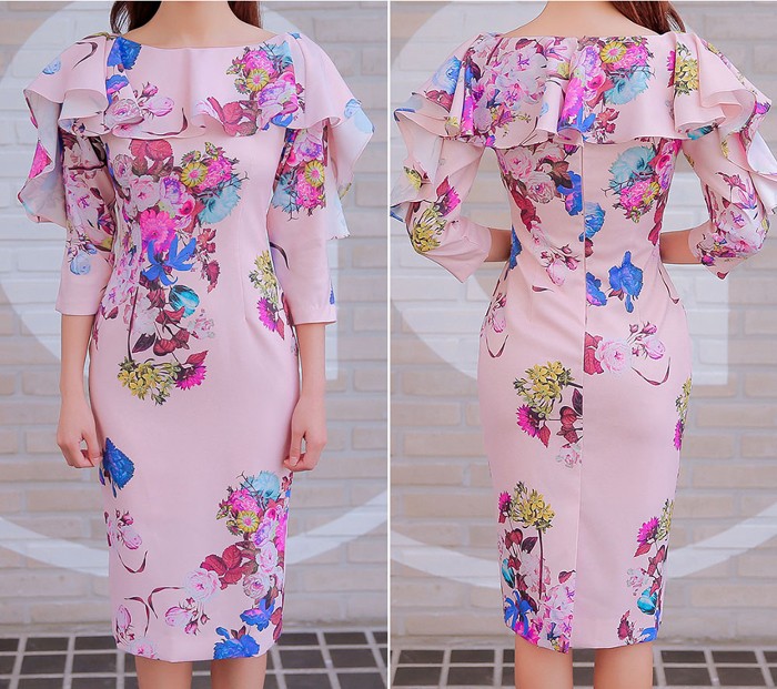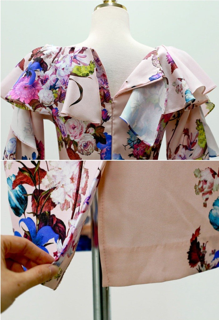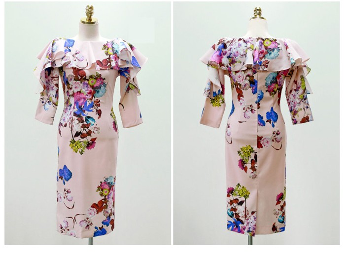 商品名:ワンピース フリル 花柄 フラワー 膝丈 きれいめ