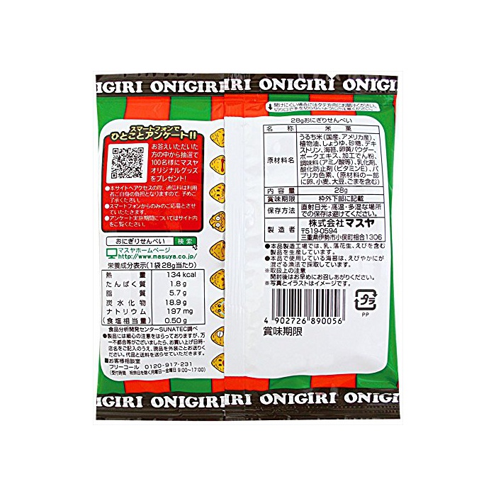 원본상품명: マスヤ 28gおにぎりせんべい 28g×20袋