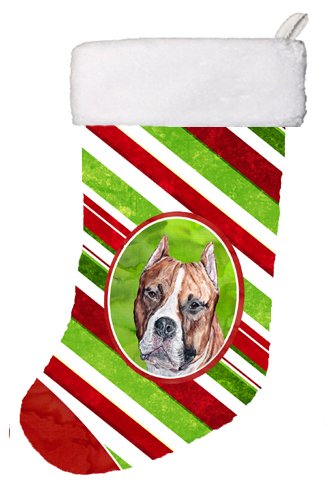 Caroline's Treasures SC9800-CS Staffordshire Bull Terrier Staffie Candy Cane Christmas Stocking, 11 x 18", Mulitcolor