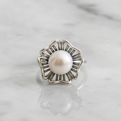 큼지막한 진주가 포인트인 빈티지 스타일 플라워 반지입니다. 퀄리티 높게 제작된 플라워 쉐입에 꼼꼼하게 더해진 유화처리가 멋스러움을 더해줍니다. 하나만 착용해도 확실한 포인트를 줄 수 있답니다. 3호부터 20호까지 제작되니 사이즈표를 참고해주세요. 자세한 사이즈와 디테일은 상세페이지를 통해 체크해주세요.