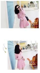 ニットワンピース ミニワンピース フレアミニ プリーツ リブニット 胸ポケット シャツワンピ レイヤードスタイル