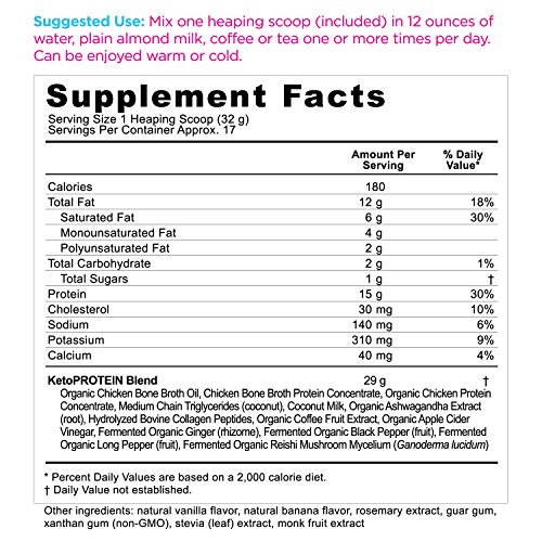 KetoPROTEIN is an ideal protein solution for the ketogenic dieter, weekend warrior, busy executive, student, gamer or anyone looking to boost mind and muscle power. Providing high quality proteins and fats from chicken bone broth and coconut MCTs rich in caprylic acid plus energizing antioxidant and adaptogenic herbs, KetoPROTEIN is designed to take your performance to the next level! 0 |