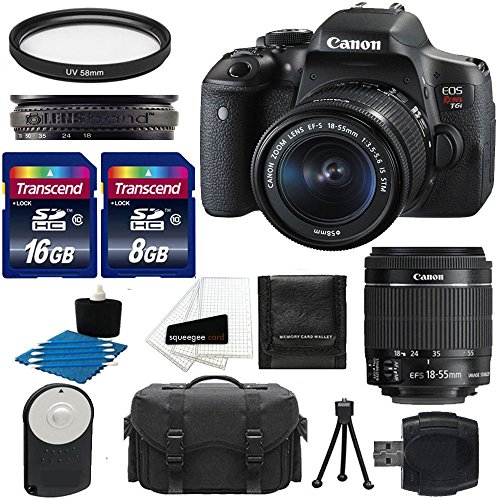 Packing a high resolution 24.2-megapixel CMOS sensor and the DIGIC 6 Image Processor into a compact body is the EOS Rebel T6i DSLR Camera with 18-55mm Lens from Canon, which includes a versatile standard zoom lens useful for stills and video. This system enables shooting in a wide variety of conditions, from bright sunlight to dim indoor scenarios due to ISO performance of up to 12,800, which can be expanded to 25,600. The APS-C camera also has built-in Wi-Fi connectivity with NFC that allows for wireless transfer of images and video to social networks and cloud storage via the Camera Connect mobile app. Also, NFC enables fast connection to mobile devices as well as the CS100 Connect Station. Full HD video in MP4 format is possible with the T6i in addition to stills and it has Hybrid CMOS AF III for fast, accurate autofocus during movie shooting and during Live View. A vari-angle 3.0" 1.04M-dot ClearView II touchscreen LCD monitor on the rear of the camera allows for versatile positioning of the camera and clear viewing, even outdoors. Additionally, the EOS scene analysis system can detect near-infrared light and flickering light sources to provide the best information for metering the scene. High speed continuous shooting at up to 5 fps ensures you will not miss a shot during fast action and this is benefited by the use of a 19-point all cross-type autofocus system. Creative filters are also available for preset looks for your photos and videos. The EOS Rebel T6i is compatible with the full line of Canon EF and EF-S lenses. It is paired here with the EF-S 18-55mm f/3.5-5.6 IS STM lens, which offers wide-angle to standard focal length shooting specifically designed for APS-C cameras. It is equivalent to a 28.8-88mm focal length in the 35mm format, and its minimum focus distance is 9.8". This lens features Canon's Optical Image Stabilization system, providing 4 stops of compensation for blur caused by slow shutter speeds when shooting hand-held in low lightFeature