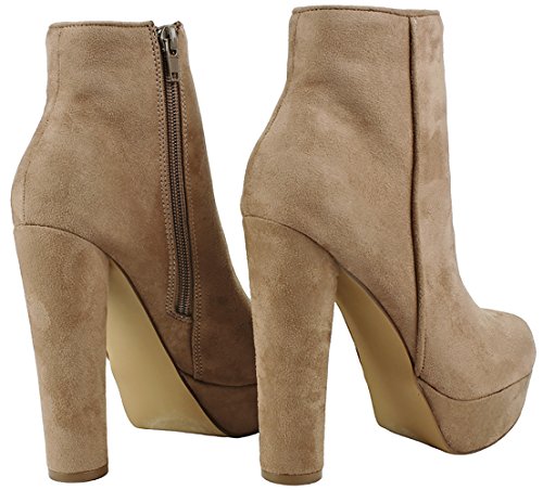 Product Description Step in these hot sassy ankle booties and you are sure to turn some heads! Featuring an almond toe, faux suede upper, a side zipper for easy wear and closure, platform and stiletto high heel for extra comfort. 0