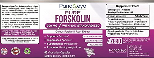 ★ PROMOTES MAXIMUM WEIGHT LOSS: Panaceya Health Pure Forskolin 300mg with 40% Standardized is designed to target and melt away your fat-storing areas-stomach, legs, butt, and thighs-with pinpoint precision. Fantastic fat stripper!