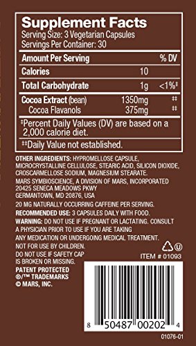 -. Feature : Scientifically proven to promote a healthy heart by supporting healthy blood flow / 3 capsules daily with food / 375mg of cocoa flavanols (125mg of cocoa flavanols in every capsule)