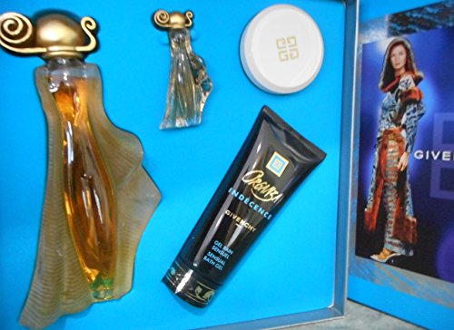 Studio : France Publisher : France Binding : Misc. Product Description Launched by the design house of Givenchy in 1999, a sensual floral fragrance. The bouquet is composed of woodsy and spicy notes - cinnamon, patchouli, musk and amber. The fragrance is intensive, sharp even in the beginning, and yet softly sensual and erotic. Set includes: 3.3oz Parfum Spray; .17oz Parfum Dab Miniature; 1.7oz Sensual Body Cream 3.3oz Sensual Bath Gel. 0