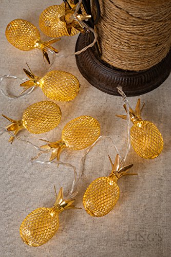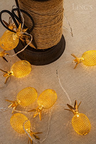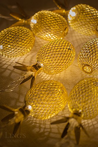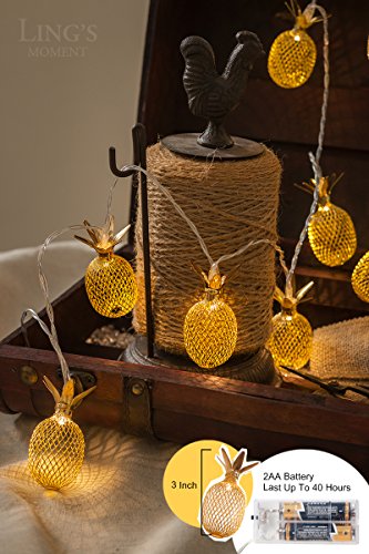 Ling's moment 10-Light 5Ft Gold Metal Mesh Pineapple LED lantern String Lights Battery Powered Novelty Fairy Lights For Bedroom Wedding Patio Party Xmas Festival Decoration (Warm White, Yellow)