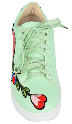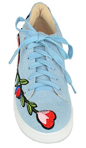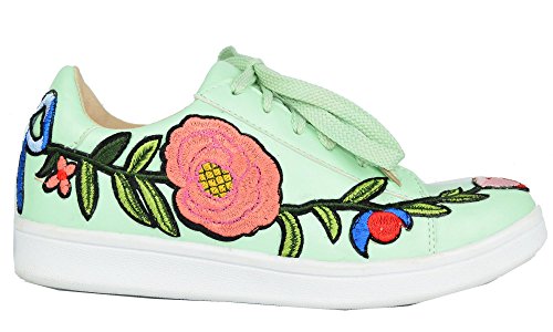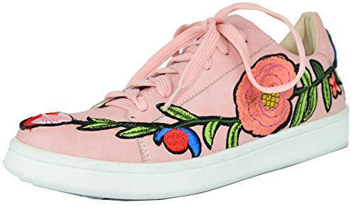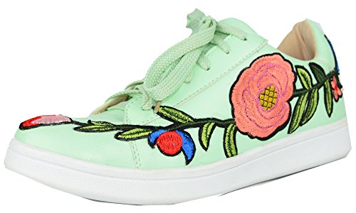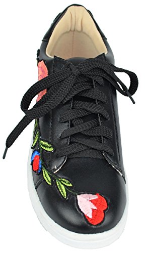 Product DescriptionChase Chloe Women's floral embroidered sneaker features closed toe with adjustable front closure. Vegan-friendly leatherette throughout. 1" platform sole. Imported.0