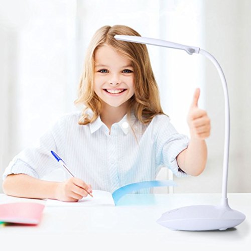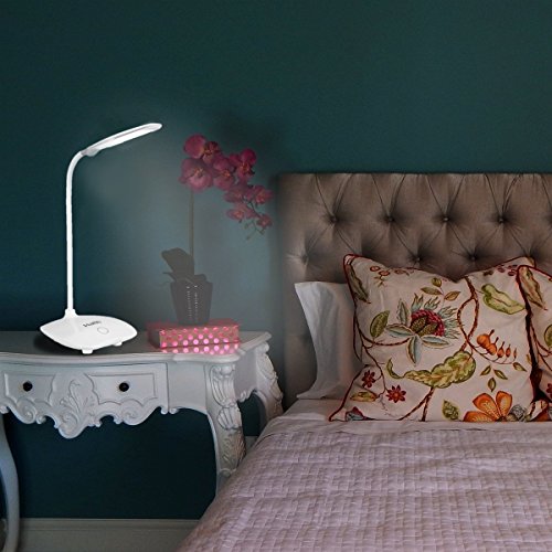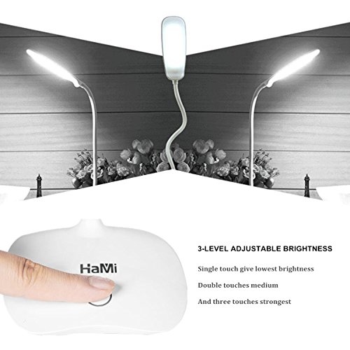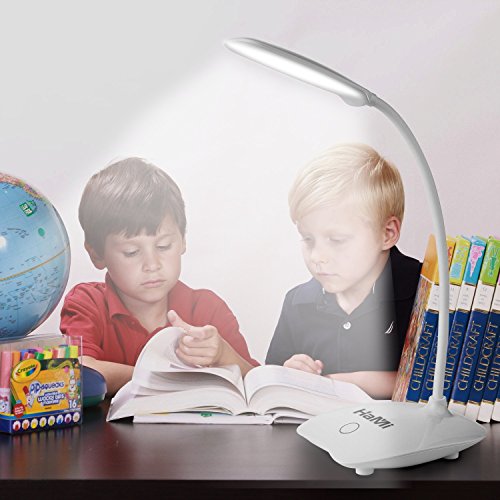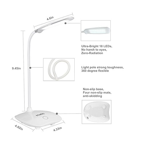 HaMi 5W 18LED Desk Lamp,Eye-care Dimmable Table Light Lamp with 3 Level Dimmer Touch Control, Adjustable Gooseneck Lamp for Studying, Reading, Working,Camping - White