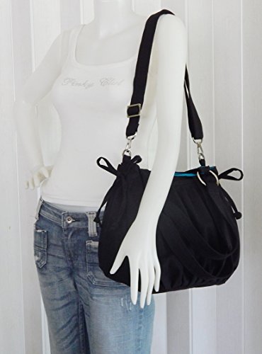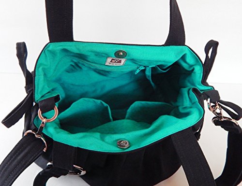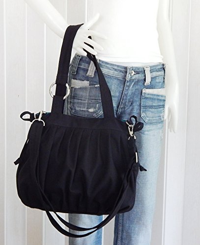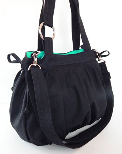 This bag is made from 100% cotton canvas, a sturdy and durable material. It is very roomy and big enough to hold lots of your essentials, such as wallet, cosmetics, iPad, phone and pocket books. --- Dimensions : 11" long at top, 11.5" tall, 5.5" wide, 11" ---..... Interior : 1 zipper pocket, 2 open pockets, a pen slip and a key clip. ....The double straps are 22" long (from end to end). The adjustable strap's length is from 27" to 47" which you can wear either under your arm or across your body. This adjustable strap can be taken out whenever you like. ..... Please hand wash the item or dry clean when needed. Made in Thailand.