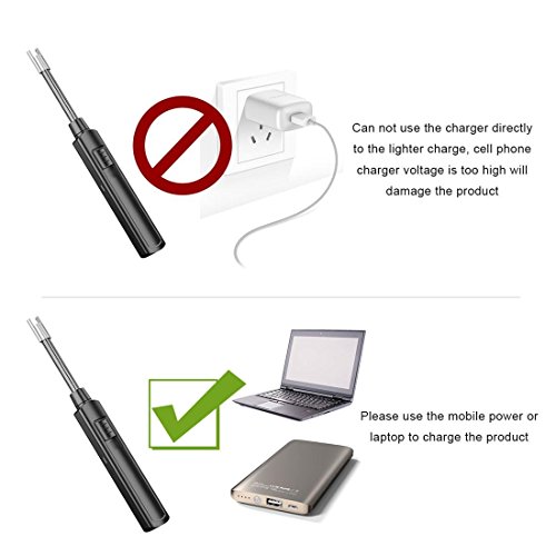 1. Don't spark while it's charging. 2. Do not ignite it continuously for more than 10 seconds. 3. Do not place in sunlight for long periods of time. 4. Blue indicator when charging (please don't still connect with power supply if blue indicator off ) 5. Use away from face, body, clothing, metallic and flammable clothing. 6. Keep lighter where children can't be reached. 7. After a full charge, please remove the power supply. 8. If the lighter is not used for long time, please charge it every 6 months. 0