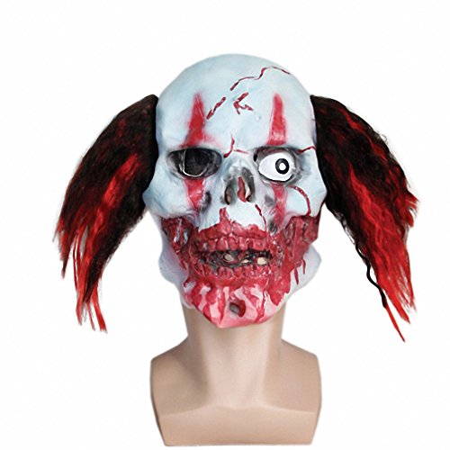 -. Title : Toy Crazy Scary Clown Bloody Skull Mask With Hair Manic Zombie Mask Halloween Scary Evil Cosplay Props x12011