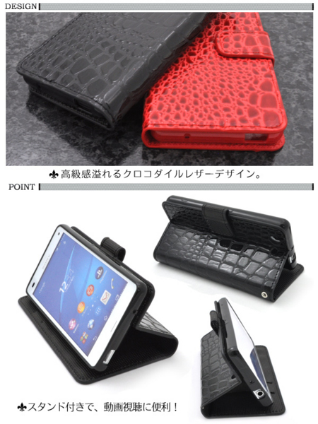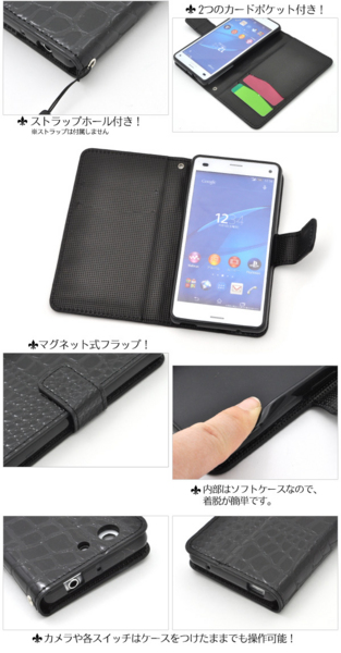 Xperia Z3 Compact SO-02G用スタンドケースポーチ。