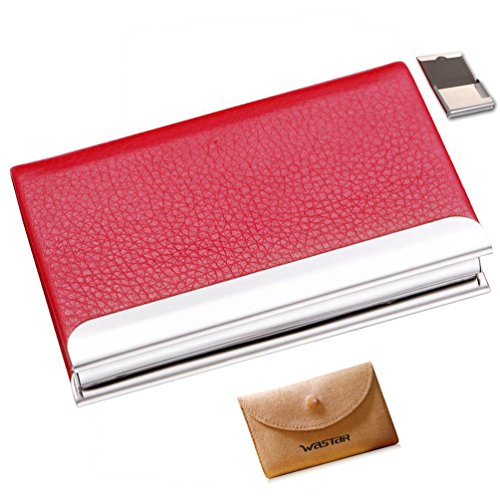 Wastar® Lychee Pattern Exquisite Business Card Case Holder High-capacity Name Card Holder Case with Supple Gift Bag (Professional for Gift) - Red