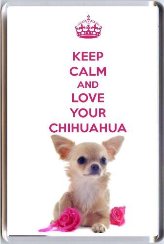 Yummy Grandmummy, Chihuahua with Pink Roses image Acrylic Fridge Magnet. “Keep Calm and Love Your Chihuahua”