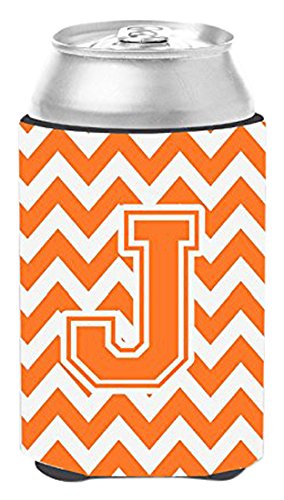 Caroline's Treasures CJ1046-JCC Letter J Chevron Orange and White Can or Bottle Hugger, Multicolor