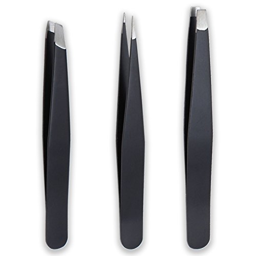 3 Pcs Tweezers Set,Stainless Steel Tweezers Kit , Electronics, Jewelry, Splinter and Ingrown Hair Removal Chemical Free (Black)