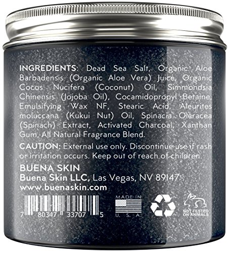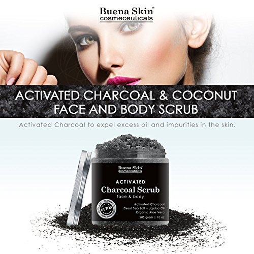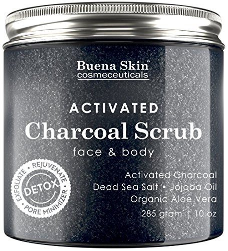 Activated Charcoal Scrub by Buena Skin | Deep Cleanser, Pore Minimizer & Reduces Wrinkles, Blackheads, Acne Scars, & Anti Cellulite Treatment - Great for Face & Body 10 oz.