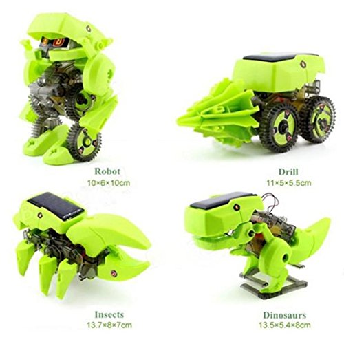 -. Binding : Toy -. Brand : abcsell -. Color : Green -. Department : boys -. EAN : 0637028755485 -. Feature : ABC® is a registered trademark and the only authorized seller of abcsell branded products. / Solar powered, fun to play with and requires no batteries. / The kit will not work in cloudy or shady locations or under a fluorescent light. / Also ideal to express your childs' interest in science, extremely helpful for your children on creative thinking. / Great assembling toy for children to practice and empower their brain as well as becoming educated with the benefits of solar energy. -. IsAdultProduct : 0 -. Label : ABC® -. Manufacturer : ABC® -. MPN : abc -. PackageQuantity : 1 -. PartNumber : abc -. ProductGroup : Toy -. ProductTypeName : TOYS_AND_GAMES -. Publisher : ABC® -. Size : 13.5 * 5.4 * 8cm -. Studio : ABC® -. Title : ABC® DIY Assemble 4 In 1 Educational Solar Robot Drilling Machine Dinosaur Insect Kit -. UPC : 637028755485