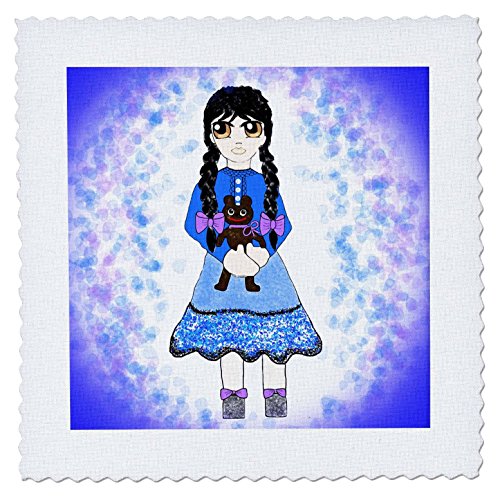 3dRose Little Anime Girl Holding A Teddy Bear - Quilt Square, 6 by 6-Inch (qs_201702_2)
