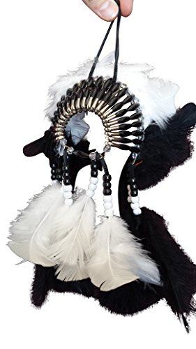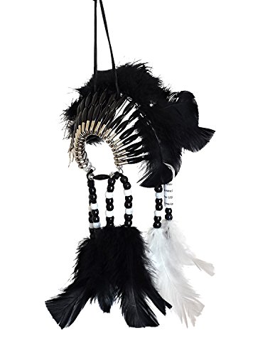 Mini Headdress Hanging Ornament - Authentic USA Cherokee Indian Made - Native American Rear View Mirror Accessory (Black & White)