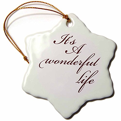 3dRose orn_79141_1 Its a Wonderful Life Inspirational Sayings Snowflake Decorative Hanging Ornament, Porcelain, 3-Inch