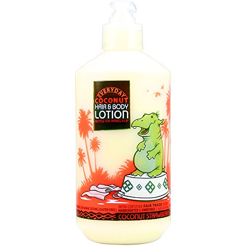 Alaffia - Everyday Coconut - Moisturizing Hair & Body Lotion, Gentle for Babies & Up, Coconut Strawberry, 16 Ounces